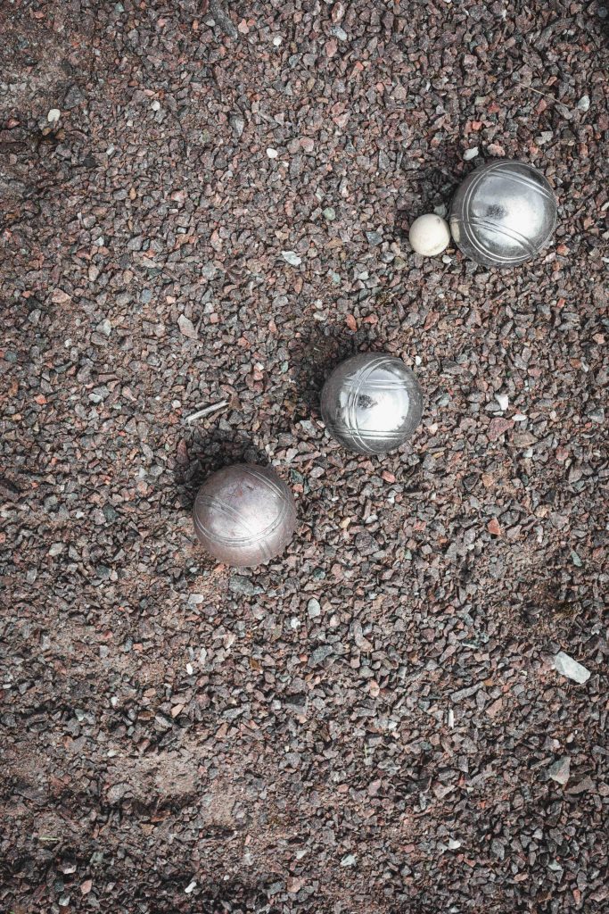 Simply explained, boules is about throwing balls as close to the small ball, also called the little ball, as possible. But first the little one has to be thrown out and land somewhere between 6-10 meters away. Each team then throws a ball. The team that ends up furthest from the little one continues to throw until they get a ball that is closest. Then it’s the other team’s turn.